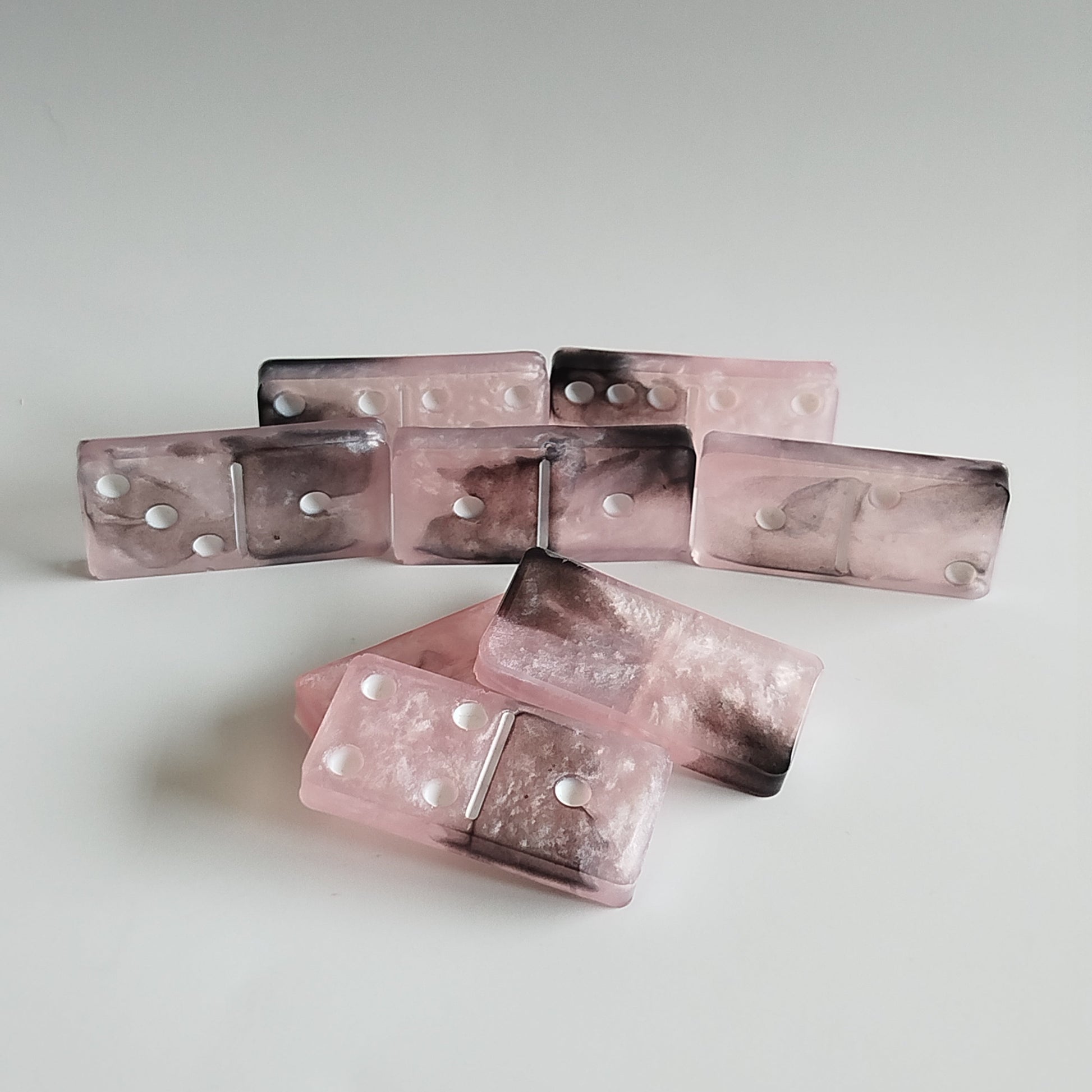 Jeu de Dominos comportant 28 pièces en résine epoxy de 4.7x2.3 cm.